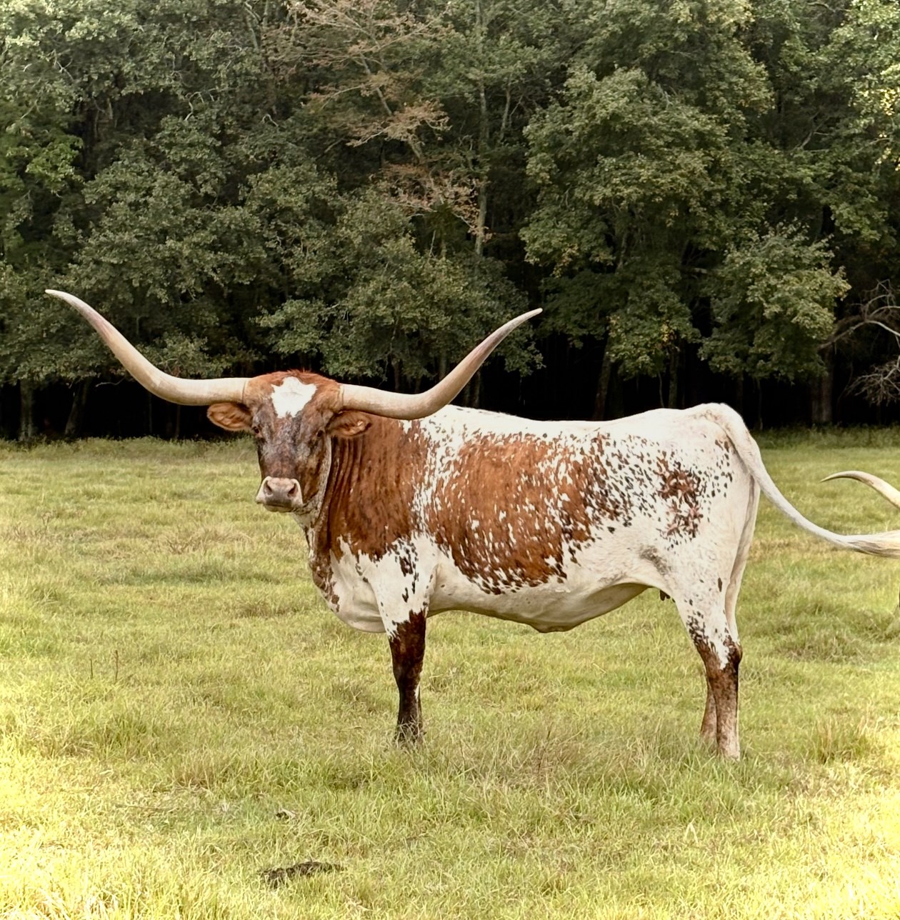 Well built girl with lots of color! We acquired Jubilant from RTG Longhorns in upstate NY. She quickly became a farm favorite. Bred to 96” Firetruck BCR 928 for a 2026 spring calf.