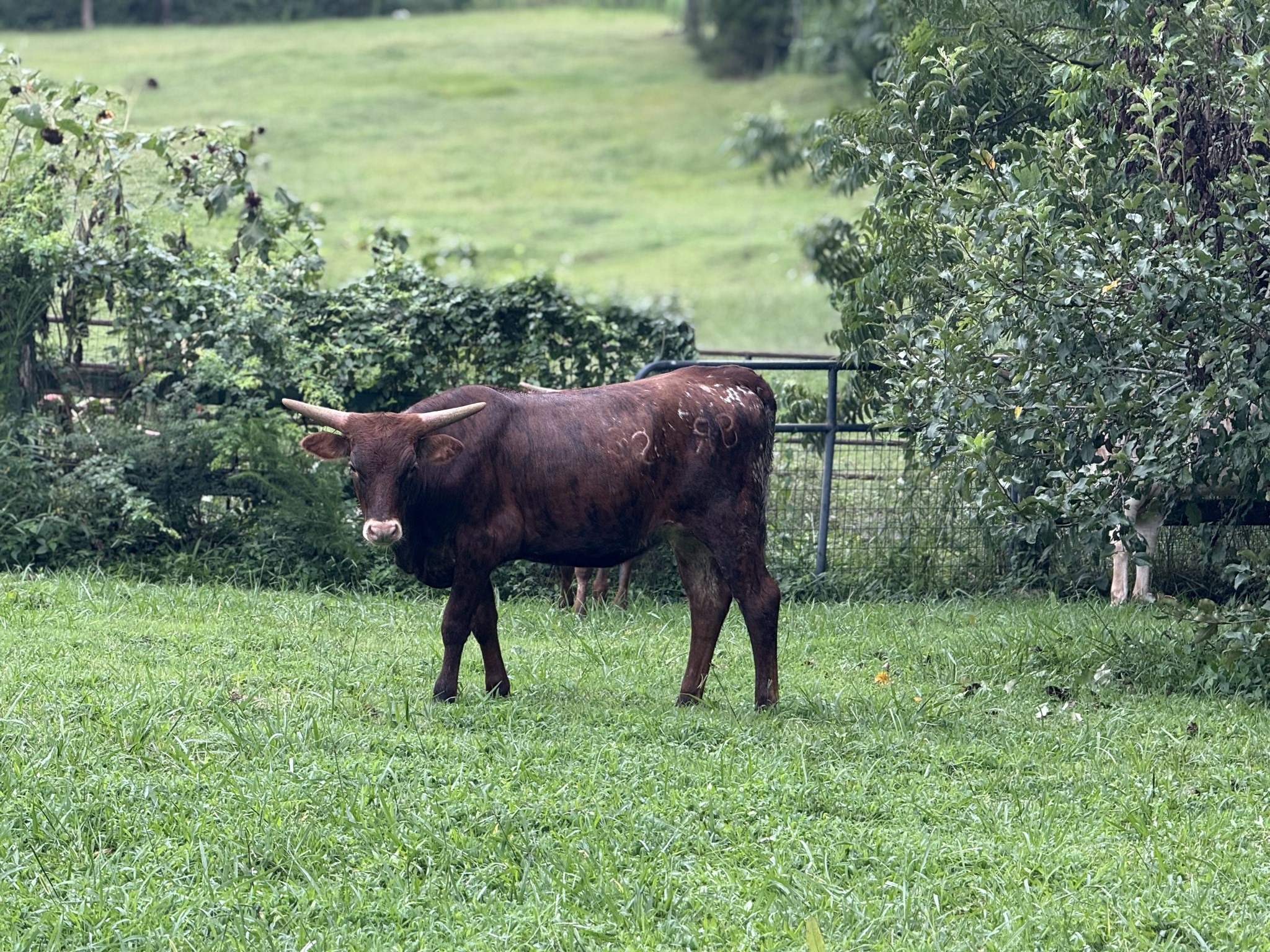 Amazing brindle beauty. Her dam is 92" + and built like a rock star. She has height, horn, color, and pedigree! What more could I ask for