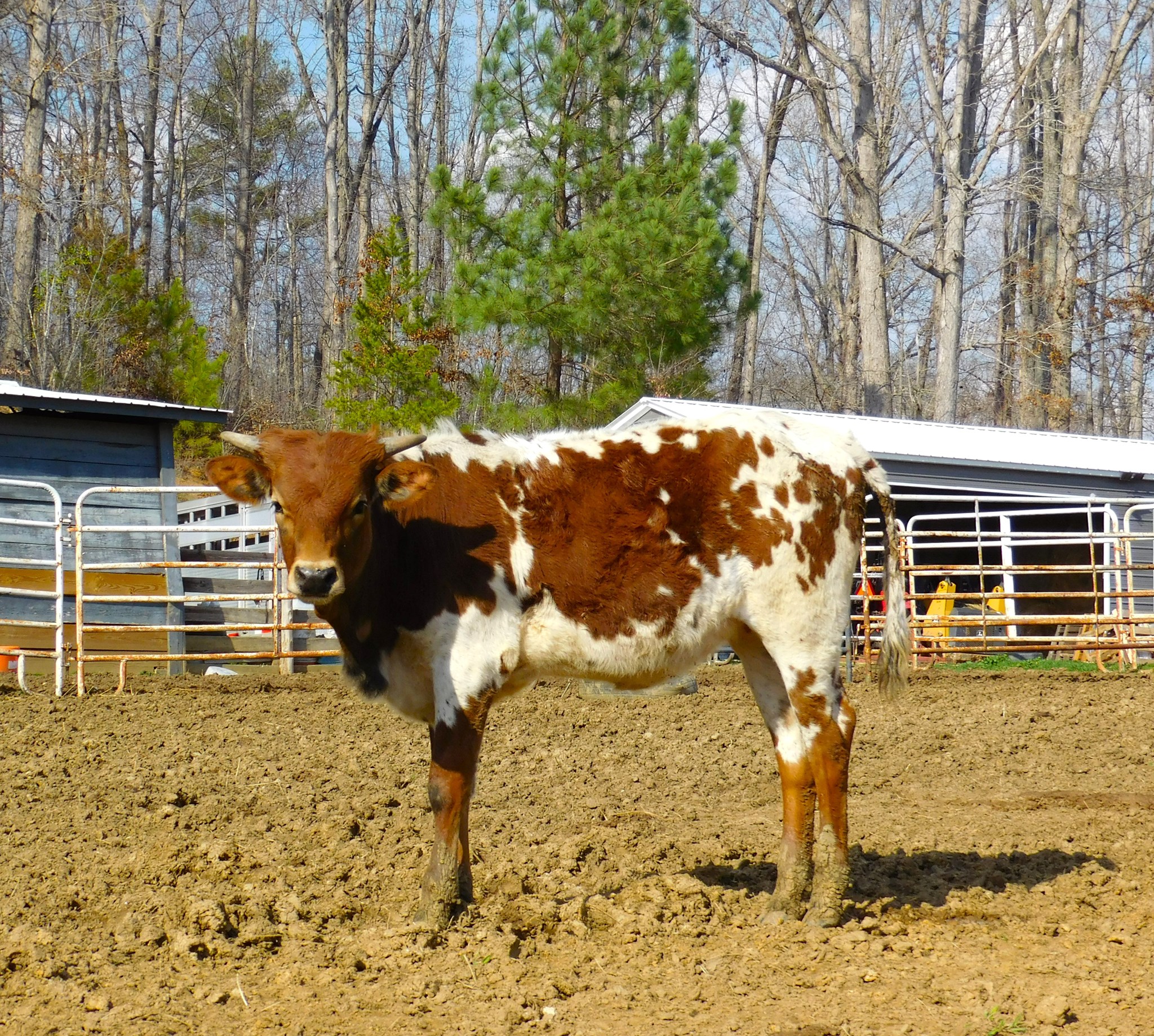 Beautiful correct heifer calf turning parker black with the spring heat. She is correct in every way and easy going. Her sire is a stud with over 90" of horn. Her Dam was over 80" at 4 so she is going to be one to watch as she grows up